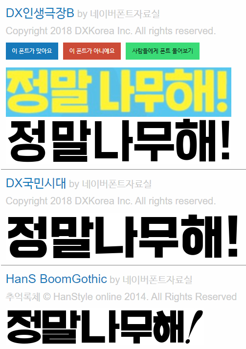 동일 폰트가 없을 경우, 가장 유사한 폰트를 보여준다고 하네요.