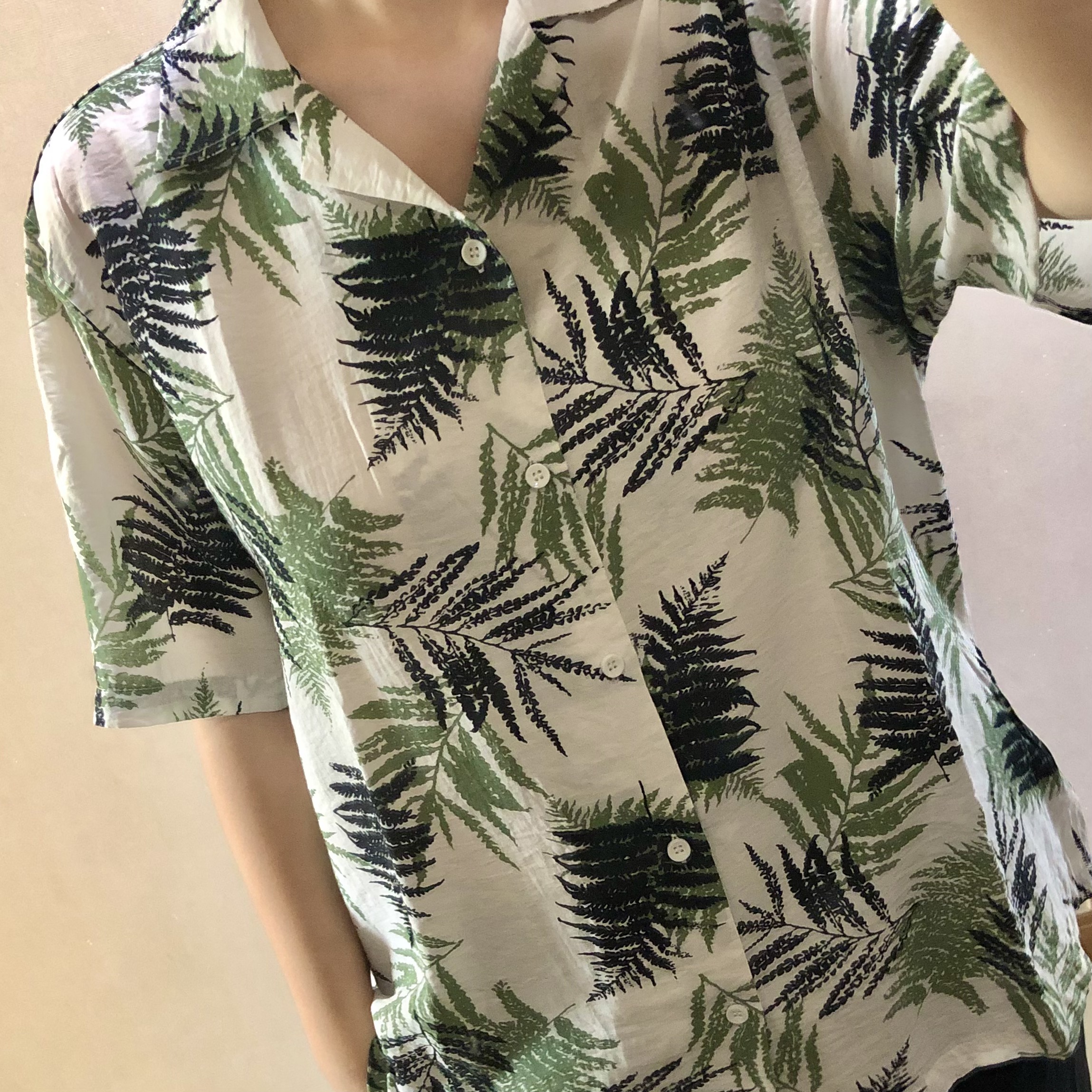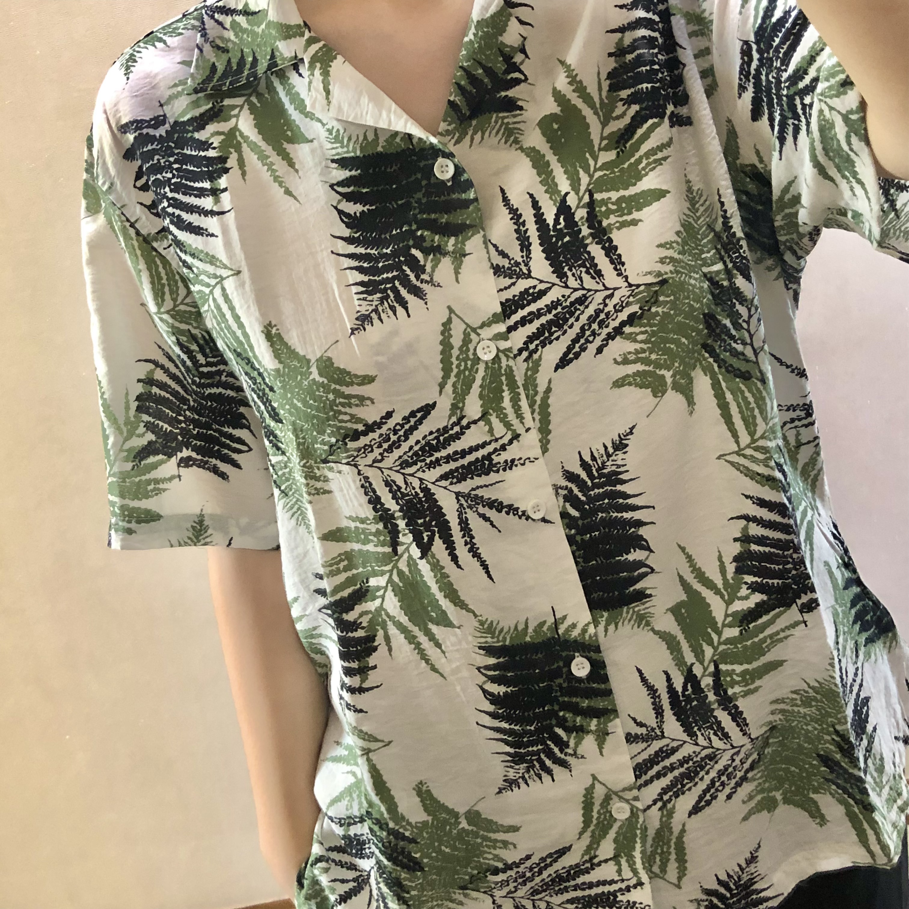 ▼ 화려한 무늬의 하와이안 셔츠도 입어봤다. 지금까지 입어본 옷 중에 제일 얇은데도 무늬가 화려해서 하나도 티 안 난다.ㅋㅋㅋㅋ (나름 다르게 찍는다고 두 장 찍었는데 걍 똑같아 보이네...)