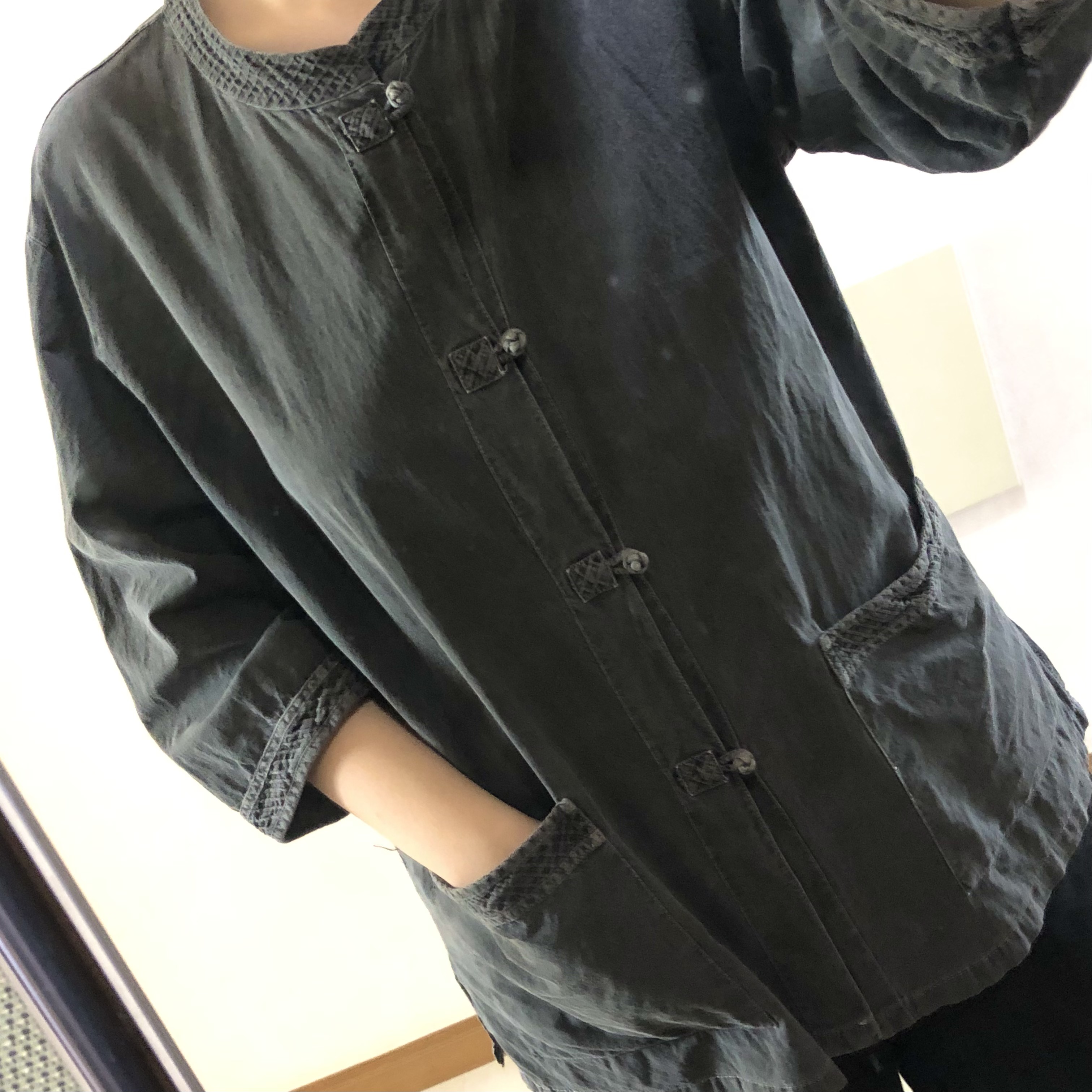 ▼ 아래는 박시한 검은색 반팔티다. 무지티가 없어서 이걸로 입어봤다. 어둡고 박시해서 티 안 난다. (거울이 더럽네ㅋㅋㅋㅋ)