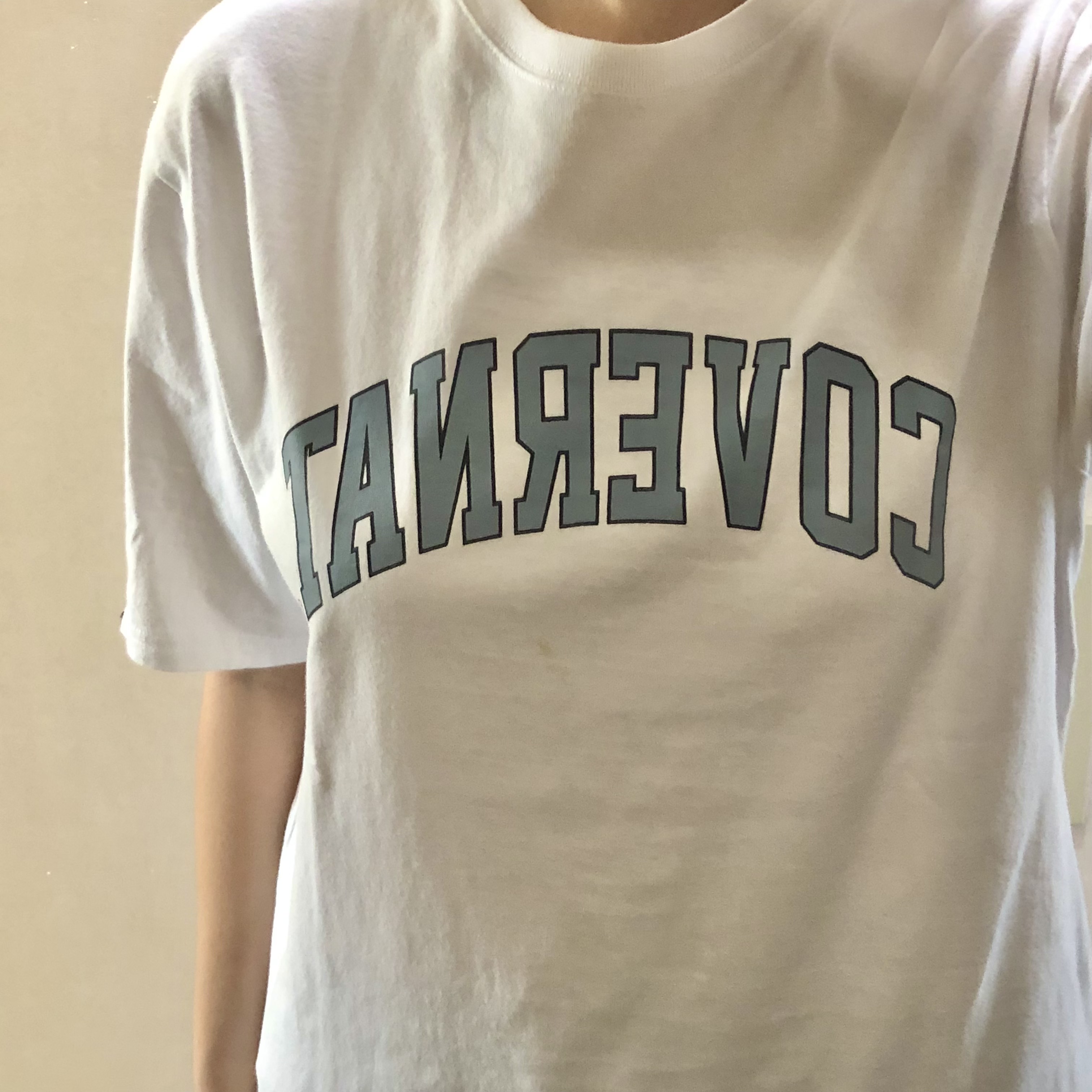 ▼ 흰색 박시한 반팔티. 무지티 없어서 최대한 무지티 비슷한 옷을 입어봤는데 이건 티 난다! 약간 꼭지 튀어나온 것처럼 보이는 듯한...