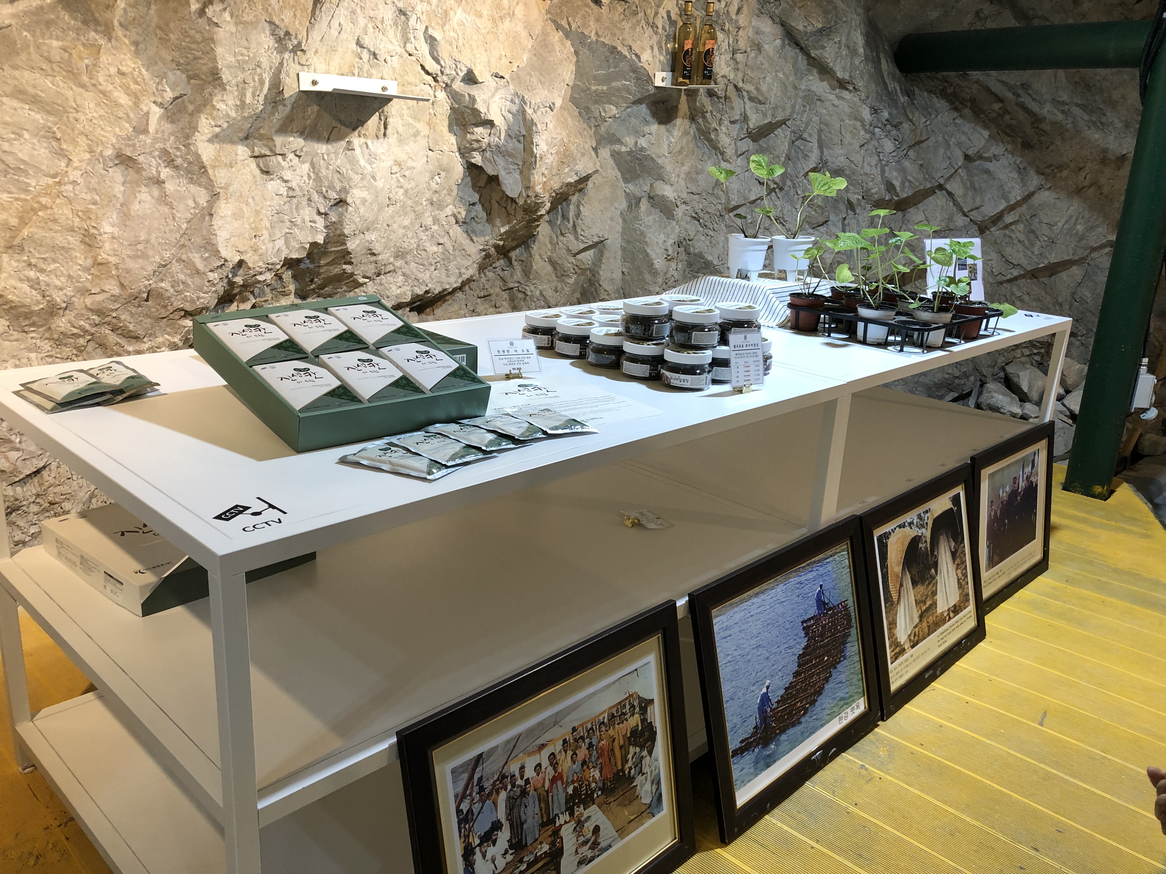 판매 중인 기념품은 와인, 물고추냉이 절임, 티셔츠, 옥팔찌 등이 전부였다.