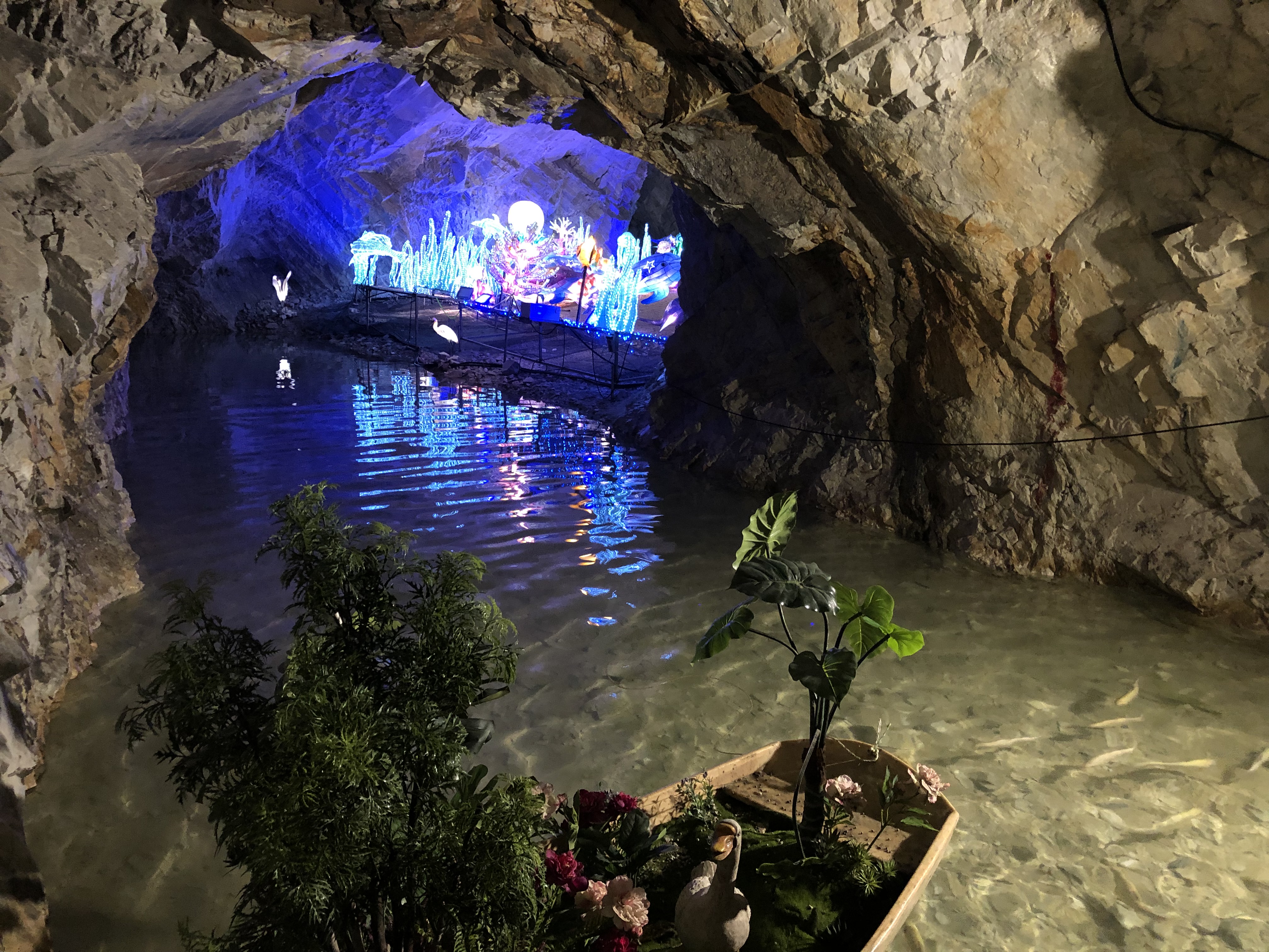동굴 벽면에 쏴주던 신기한 조명들과 물고기들. 보트 타고 지나가면서 바로 옆에서 볼 수 있다.
