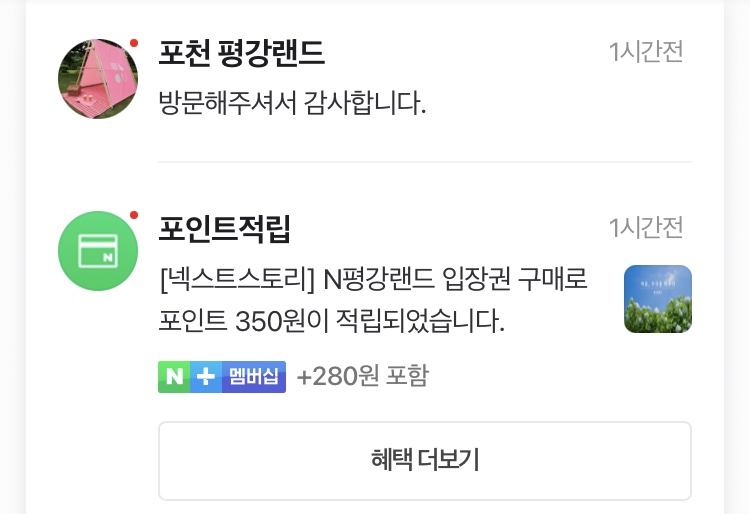 평강랜드 네이버 예약의 또다른 혜택?