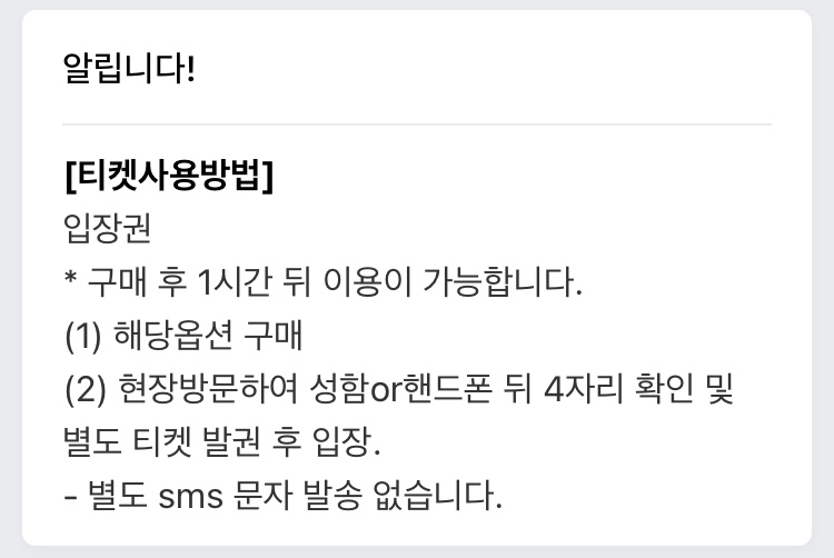 ※ 주의할 점은 구매 후 1시간 뒤에 이용 가능하다는 점이다.