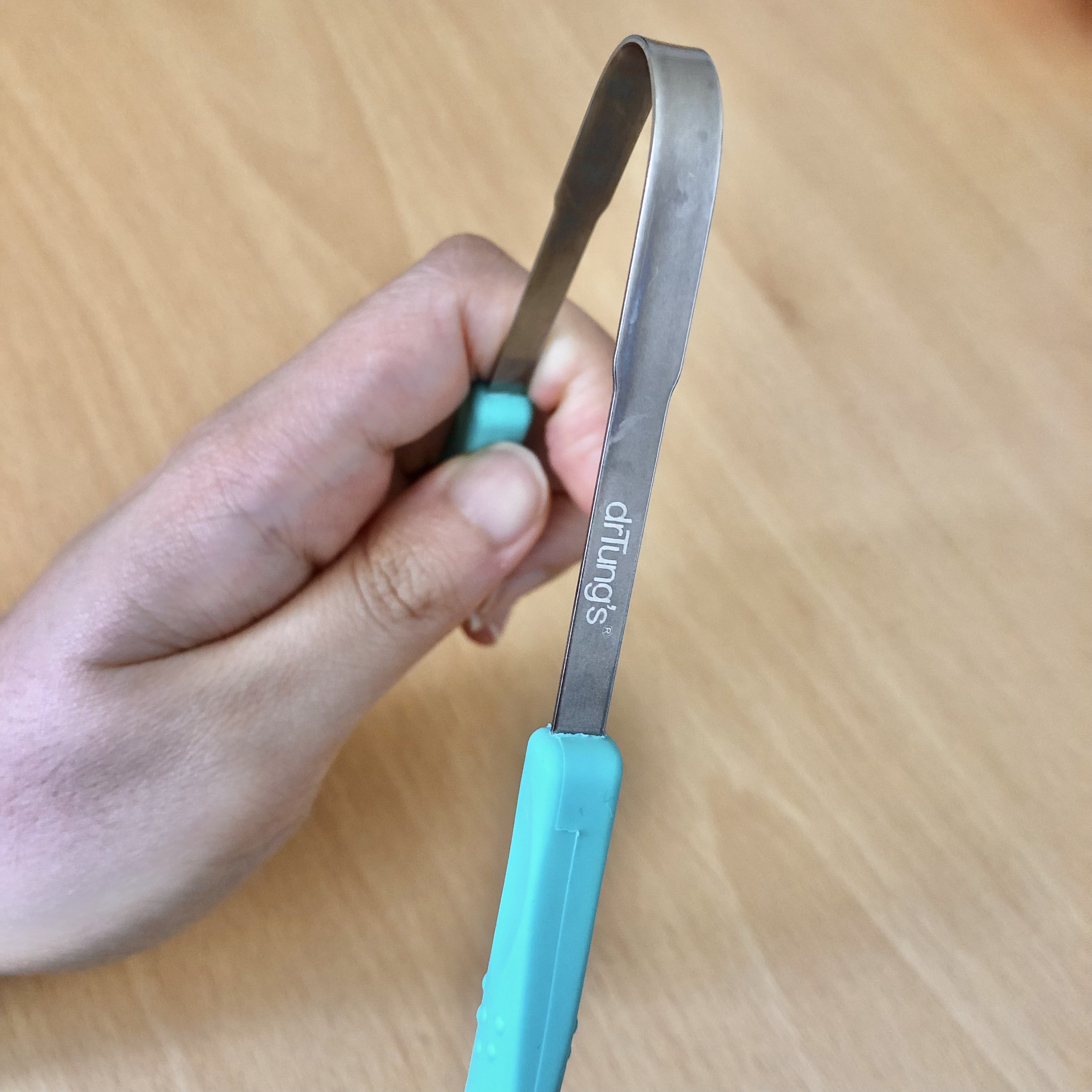 닥터텅스 혀클리너는 U자 형태로 생겨서 혀에다 편하게 대고 아래로 긁어내면 된다.
