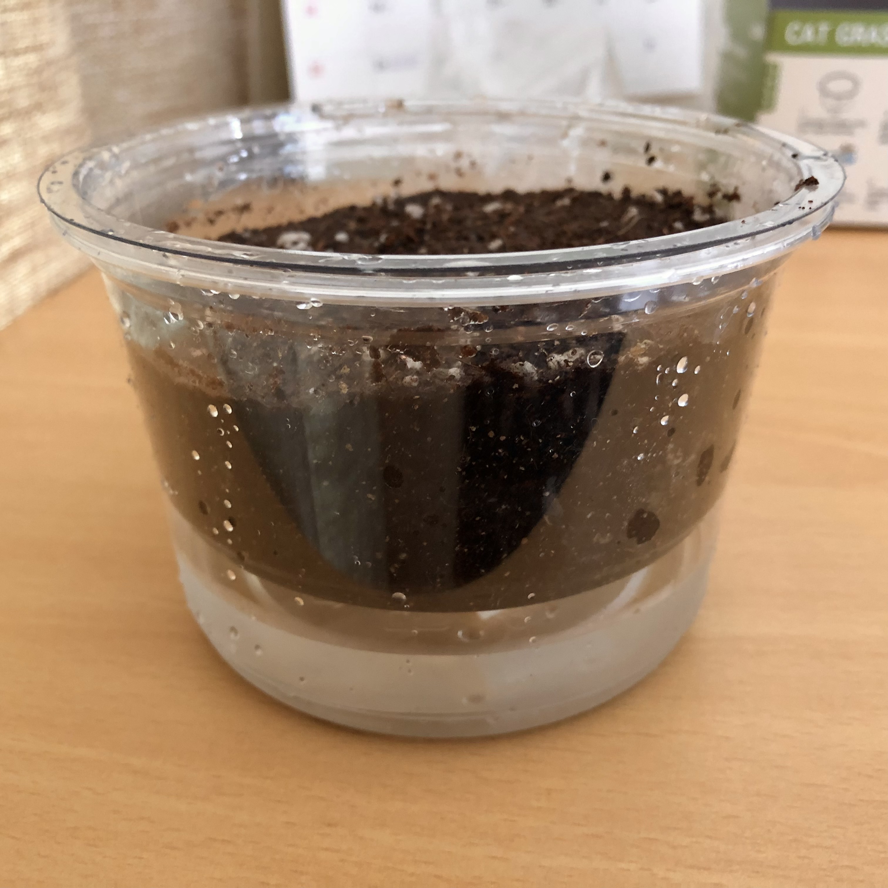 4. 흙에 물을 적신 후 캣닢 씨앗을 골고루 뿌린다.