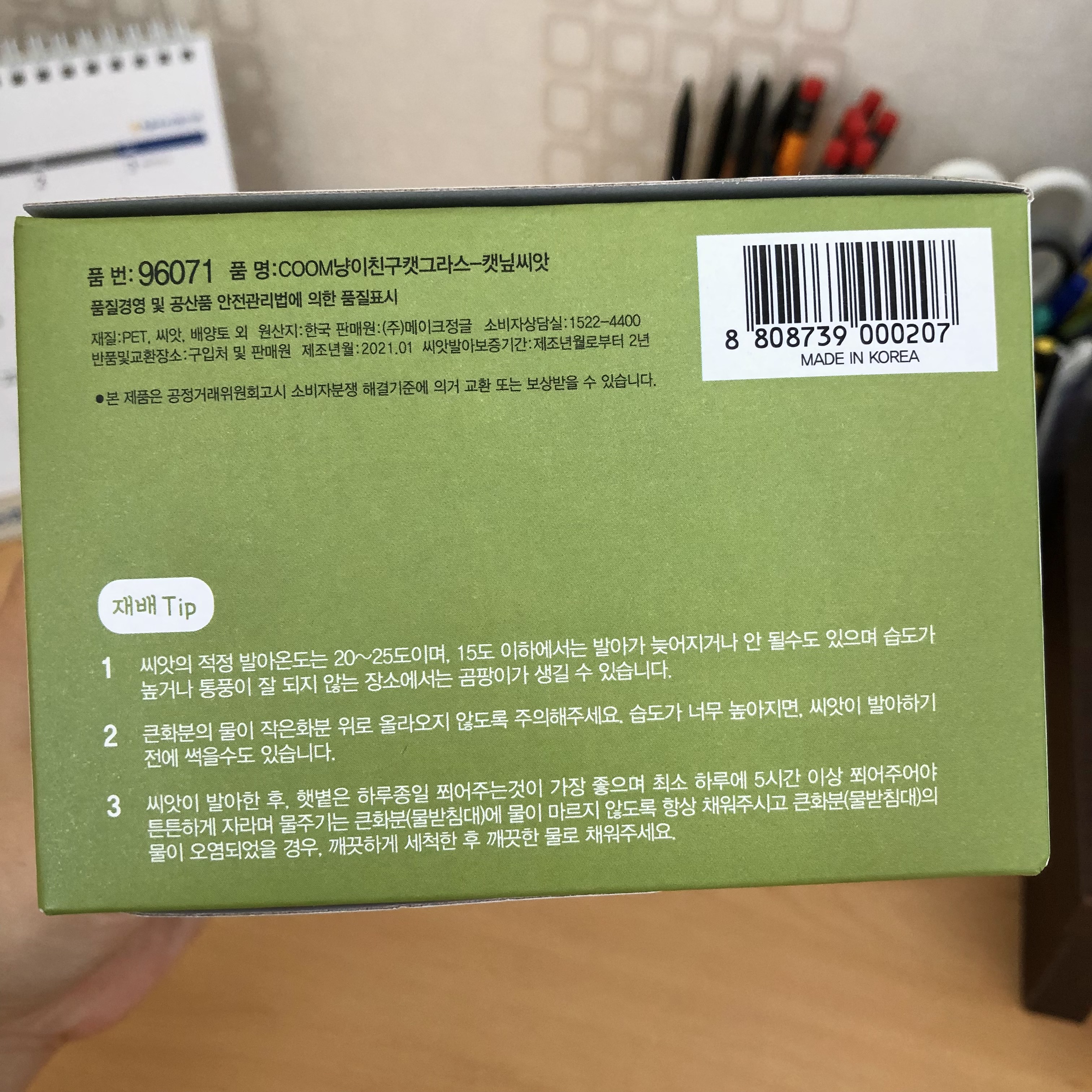 집에 계신 냥님에게 살아있는 싱싱한 캣닢을 제공하기 위해 다이소에서 이것을 사왔다.