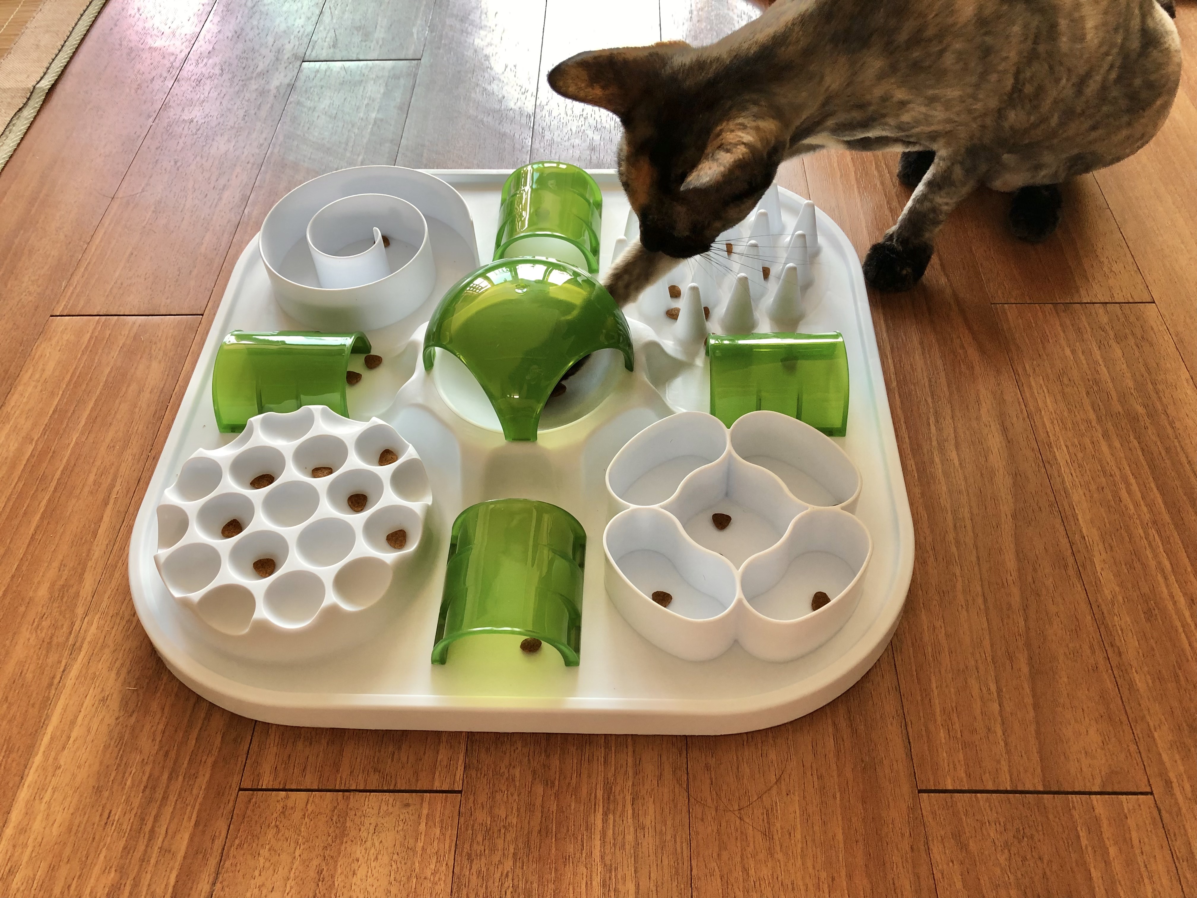 이런 먹이퍼즐을 한 번도 해본 적 없어서 그런가, 원리를 잘 이해하지 못하는 듯하다. (잘 쓰는 고양이도 있다. 냥바냥.)
