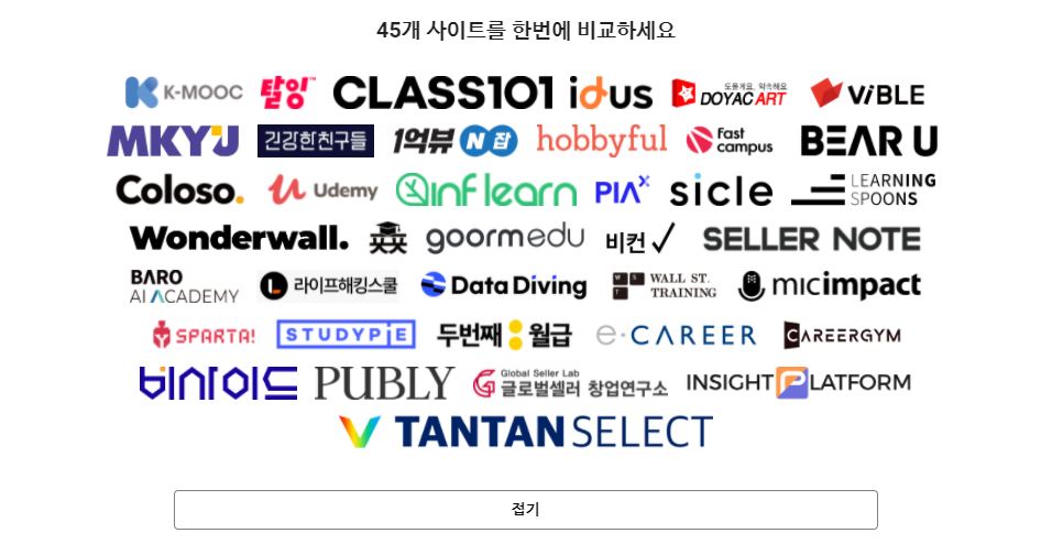 한눈에 비교 가능한 클래스모두모아 사이트로 내가 원하는 강의 잘 찾아봅시다.