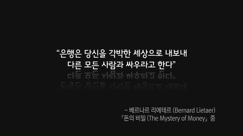 누군가 빚을 갚으면 누군가는 파산하게 된다. 모든 돈이 빚에서부터 시작되기 때문이다. 그래서 자본주의 사회는 경쟁이 필연적이다. 이자 시스템이 존재하는 한, 다른 이의 돈을 뺏기 위해 경쟁할 수밖에 없게 되어있다. 우리는 저마다 살아남기 위해 싸운다. 바로 이것이 우리가 매일 돈, 돈, 돈하며 싸우는 이유다.