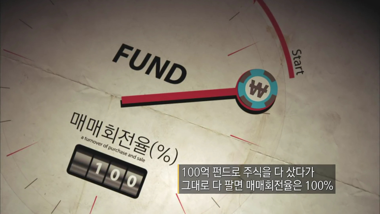 증권 거래가 얼마나 빈번한지를 말할 때는 매매회전율이라는 말을 씁니다. 매매회전율이란 고객의 돈으로 주식을 샀다가 다시 돈으로 환매하는 것을 말합니다. 이렇게 한 바퀴 도는 것을 회전율 100%라고 합니다. 자산운용회사가 우리가 모아준 100억 펀드로 주식을 다 샀다가 그대로 다 팔면 매매회전율은 100%입니다.