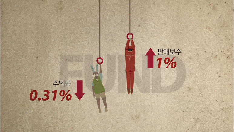 그 뿐이 아닙니다. 수탁회사와 투자운용회사에는 매년 보수를 줘야 합니다. 펀드가 잘 나가서 50%이상의 이익을 낼 때는 그래도 괜찮습니다. 거기서 일정 부분을 떼어 주면 되는 것이니까요. 하지만 수익을 못 냈다고 보수를 안 주는게 절대 아닙니다. '미안하다' 이렇게 깎아주지도 않습니다. 결국 원금에서 줘야되는 것입니다.